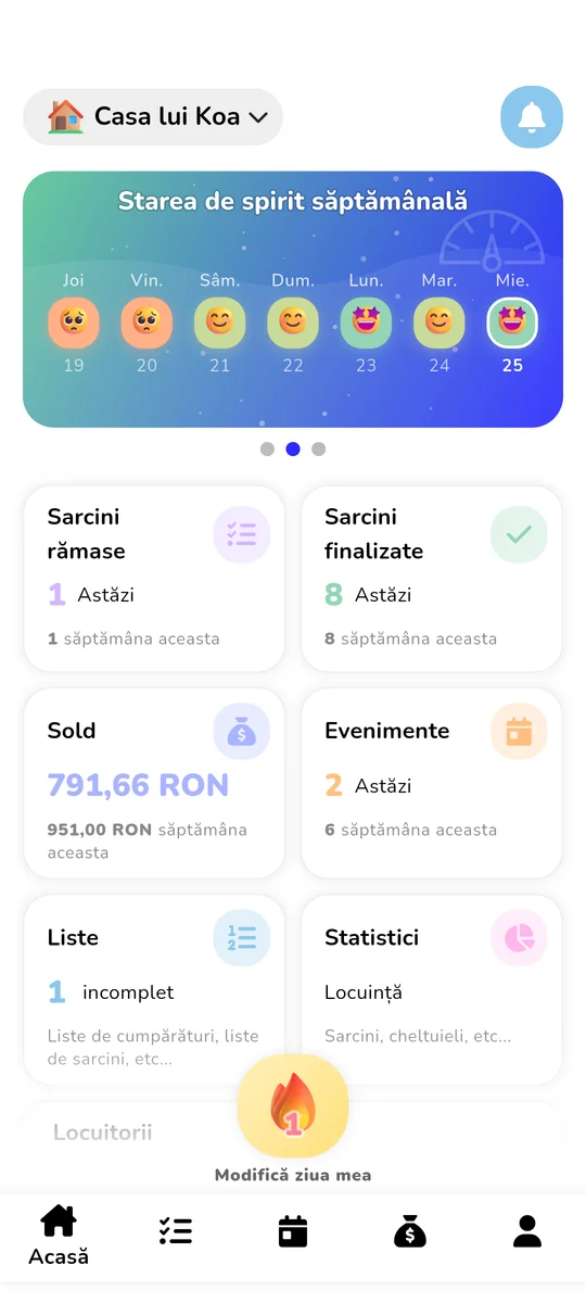 Cine face ce? Cât cheltuiește fiecare? Cum evoluează starea de spirit? Un panou complet pentru a înțelege locuința.